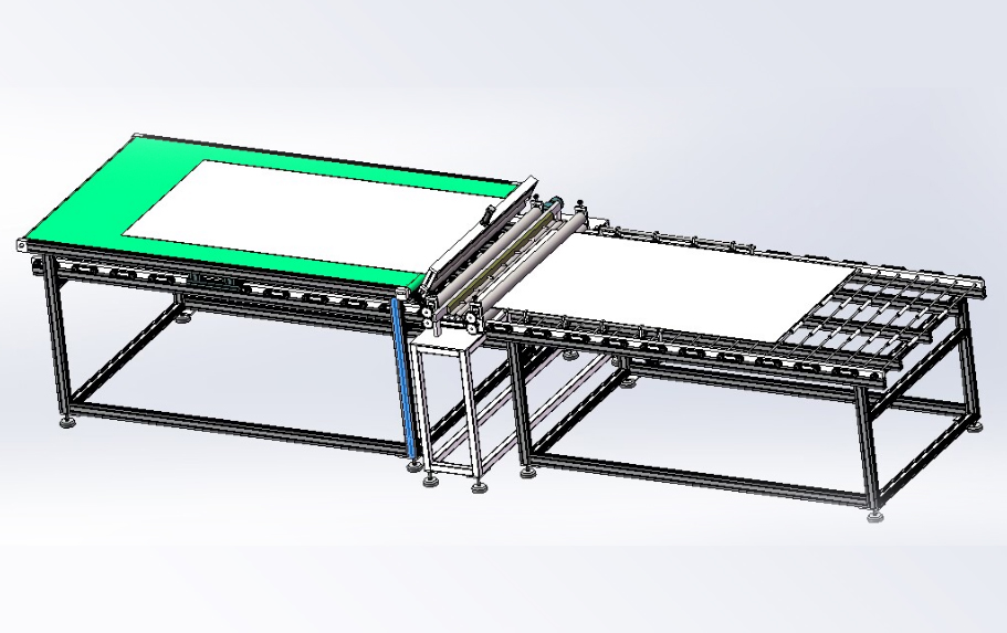 本生產(chǎn)線依據(jù)用戶需求,進行“量身”設計,由層壓前鋪設傳輸線;通過不同機構(gòu)的傳輸、轉(zhuǎn)運、變向、定位、旋轉(zhuǎn)/釋放實現(xiàn)組件封裝過程的流水化操作,可提高單位組件生產(chǎn)效率。